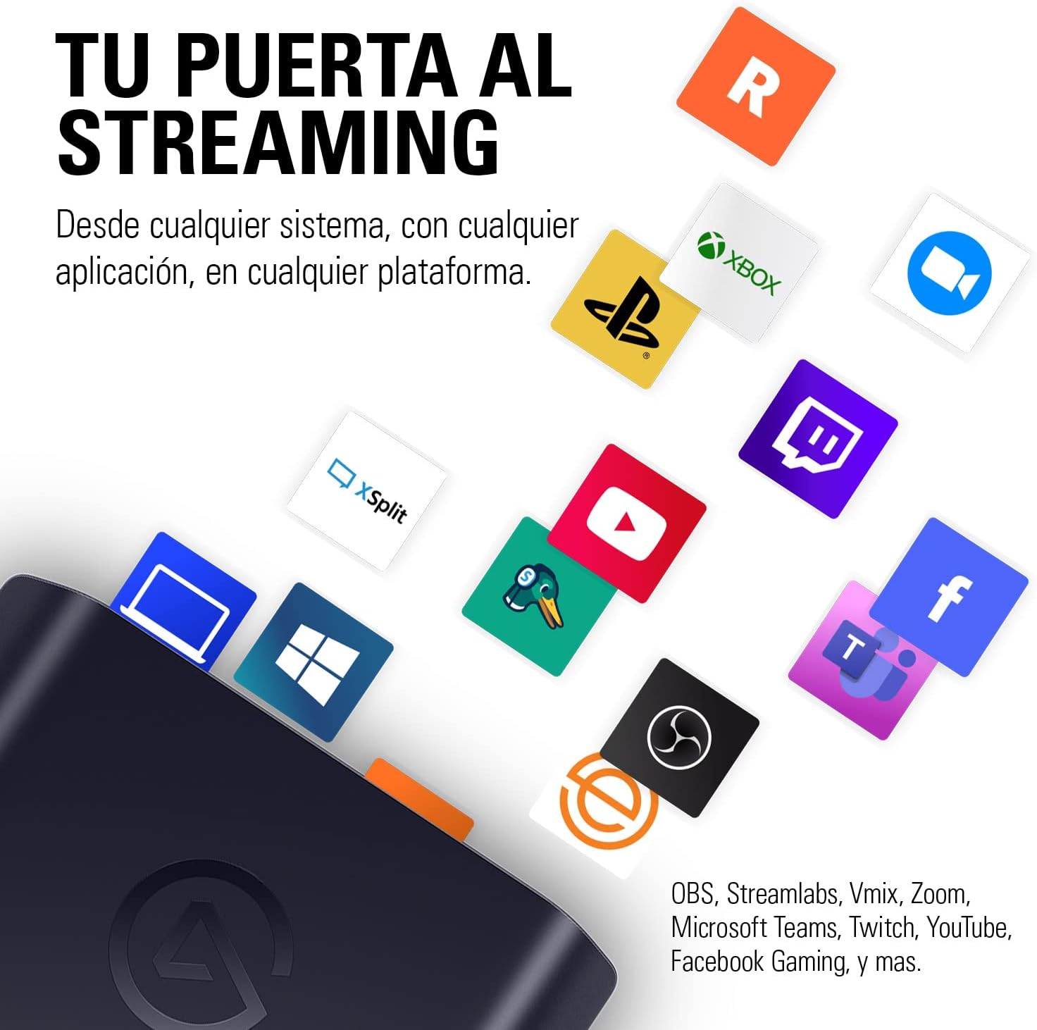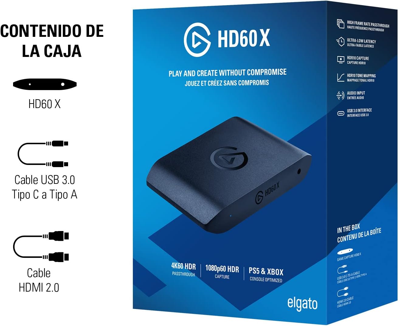 CAPTURADORA DE VIDEO ELGATO (10GBE9901) HD60 X,HDMI,CABLE USB-C A USB-A,PS5,XBOX,PC,1080P,NEGRO