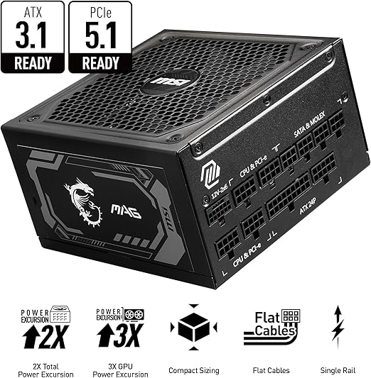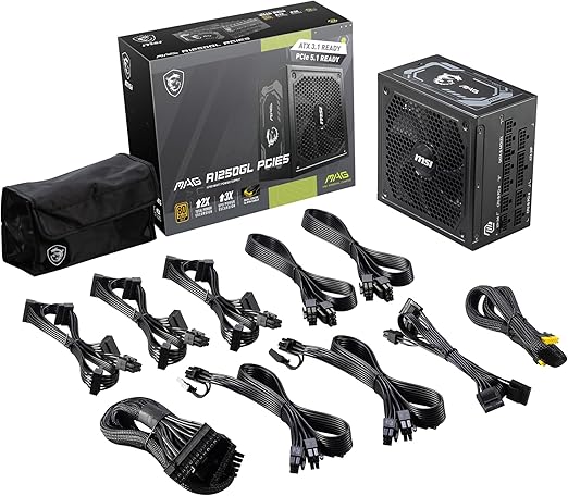 FUENTE DE PODER MSI MAG A1250GL PCIE5 1250W, PCIE 5.1, MODULAR, 80 PLUS GOLD, PFC ACTIVO, ATX 3.1