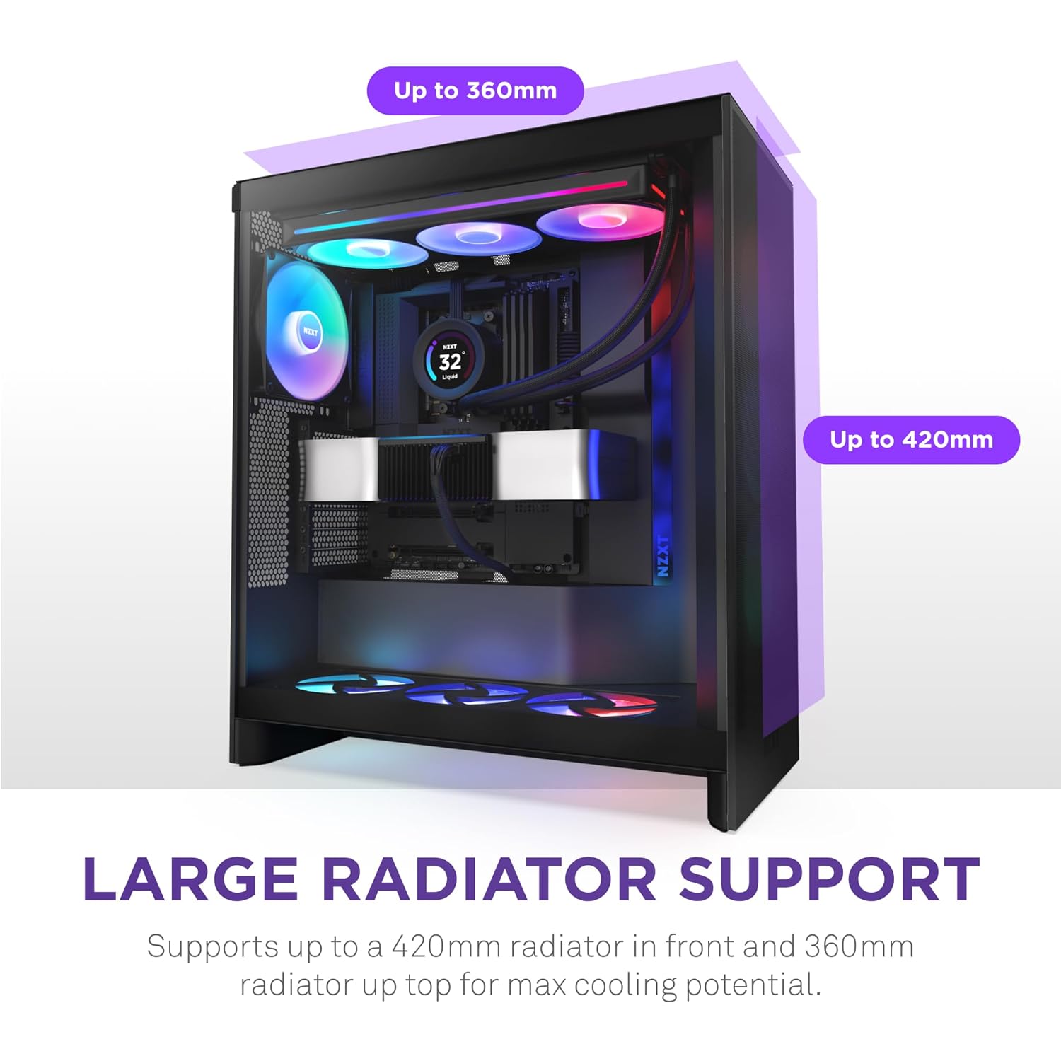 GABINETE NZXT H7 FLOW negro CM-H72FB-R1 RGB ATX SIN FUENTE CRISTAL TEMPLADO