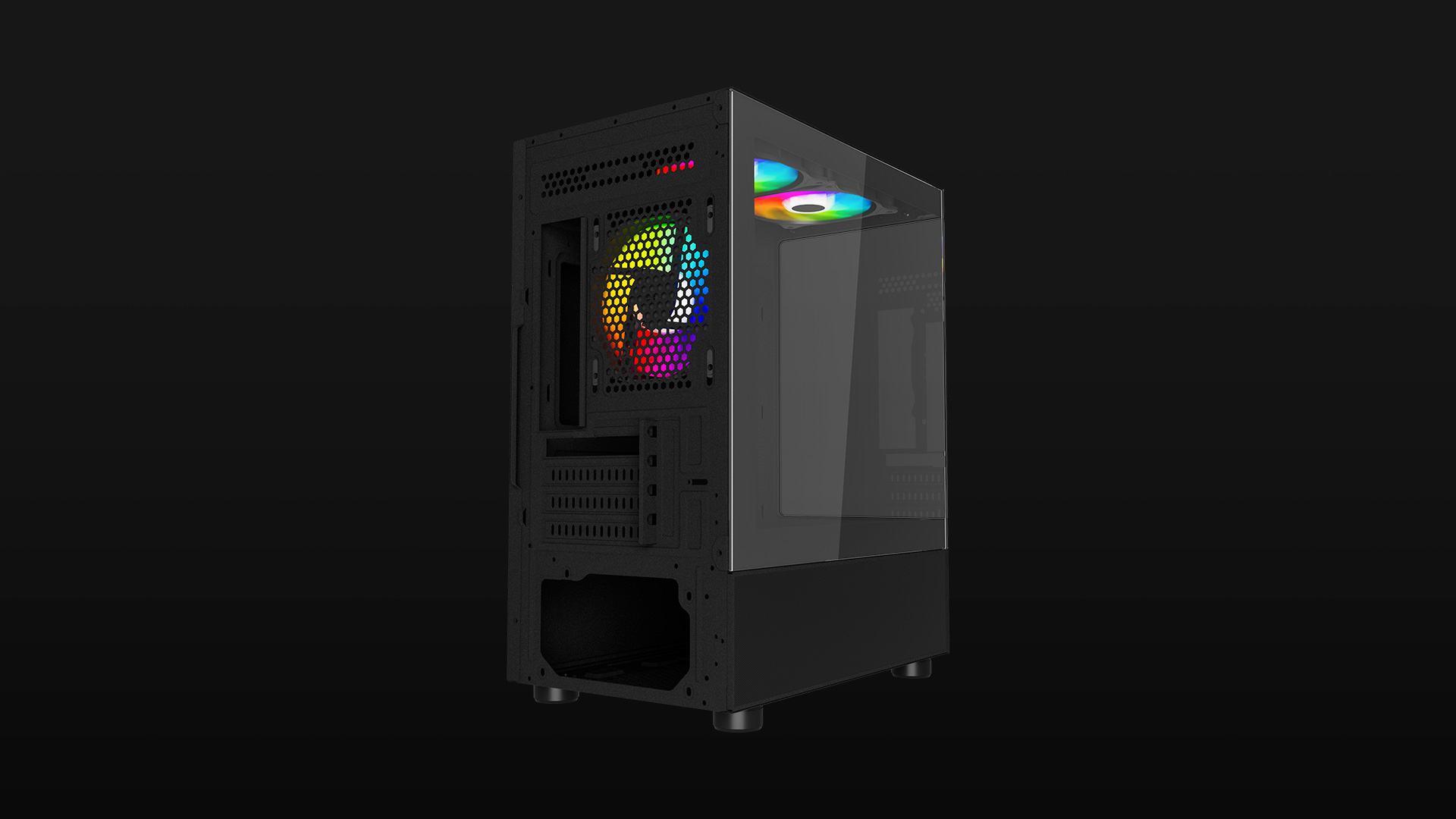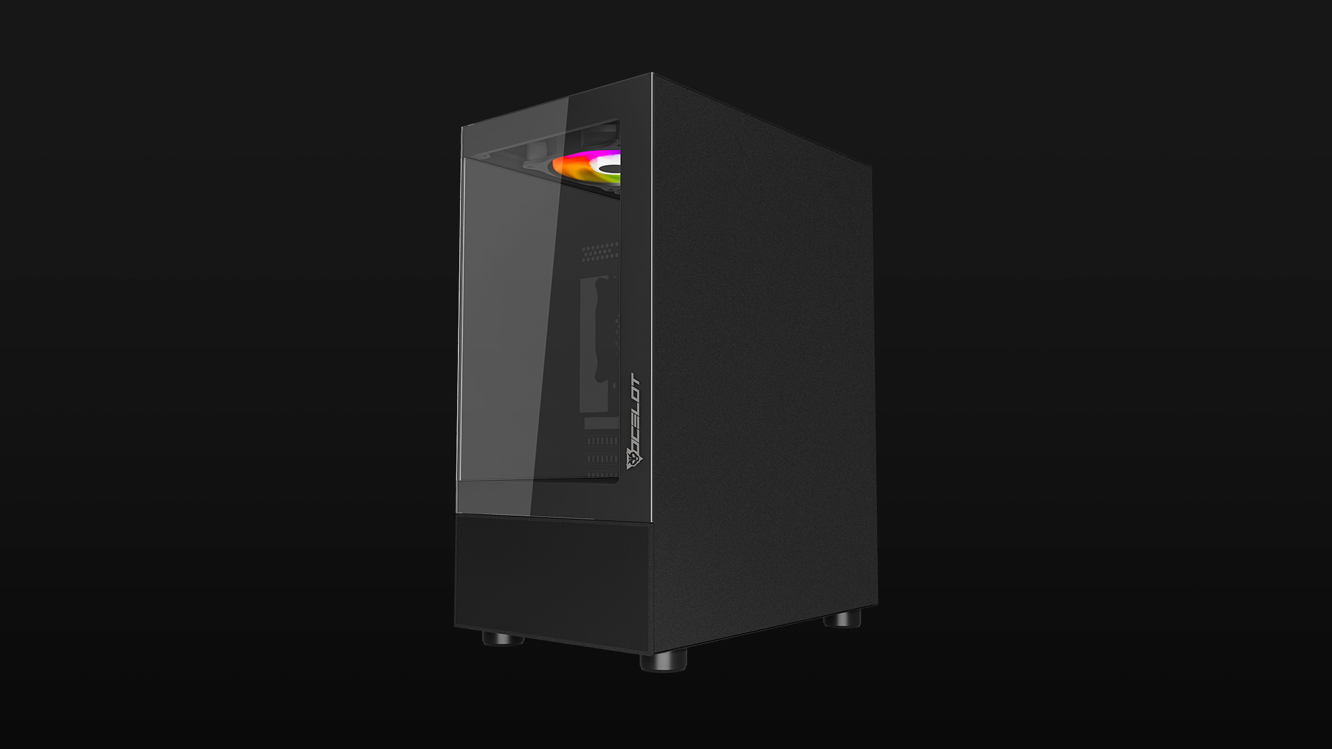 GABINETE OCELOT GAMING GLASS EN6 CRISTAL TEMPLADO INCLUYE 3/FAN COLOR NEGRO