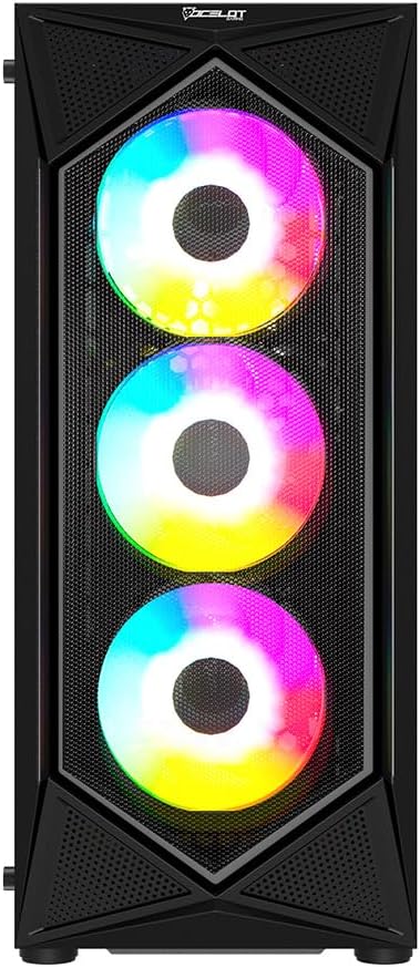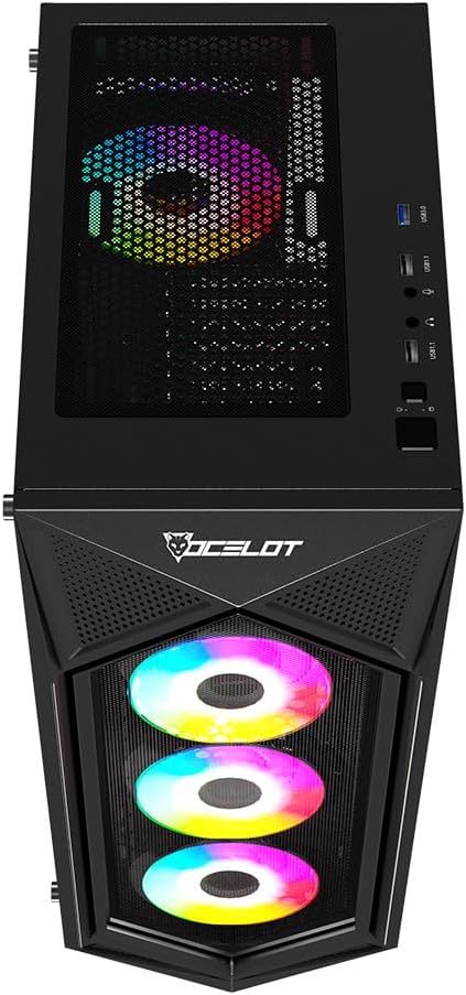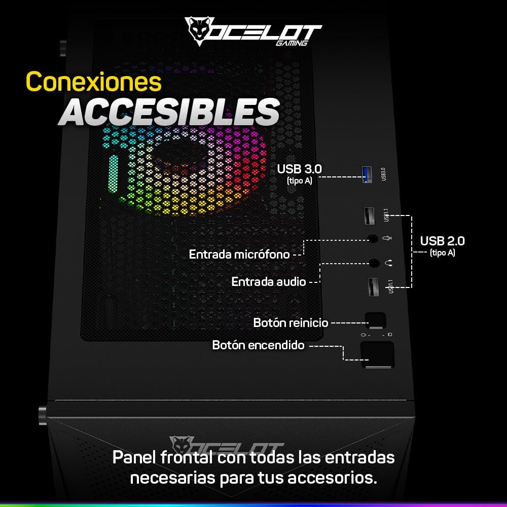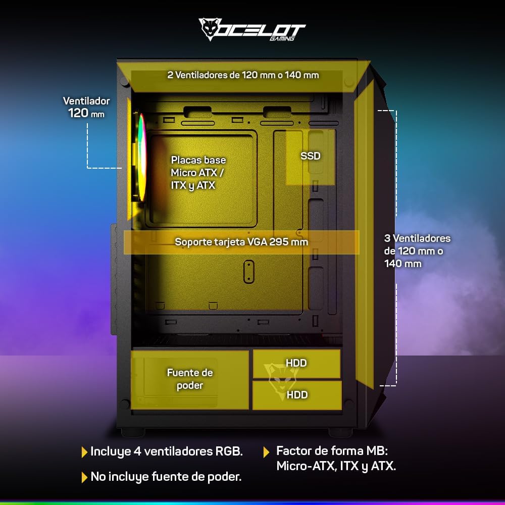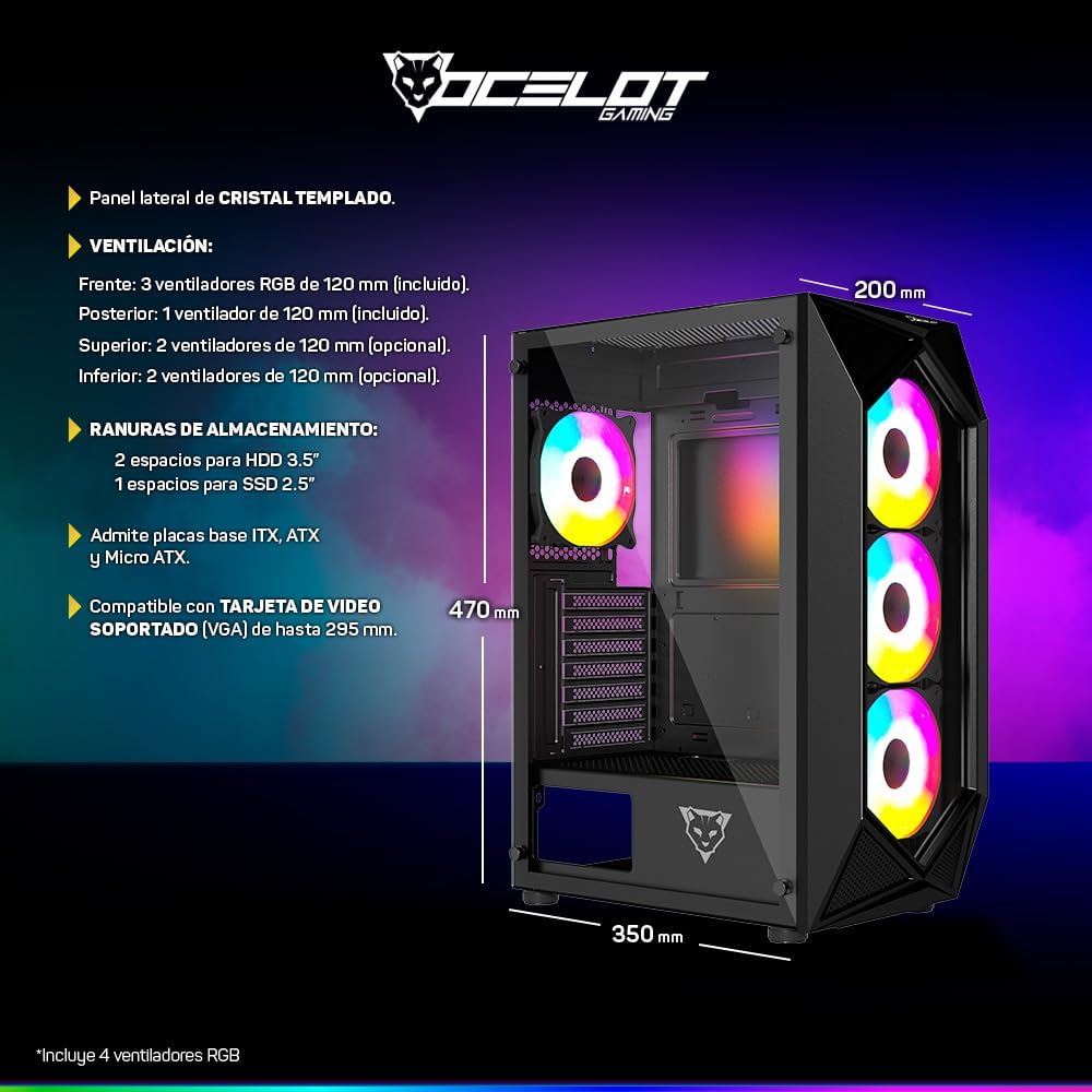 GABINETE OCELOT GAMING POLYGON-E5 / MID CRISTAL TEMPLADO INCLUYE 4 VENTILADORES NEGRO