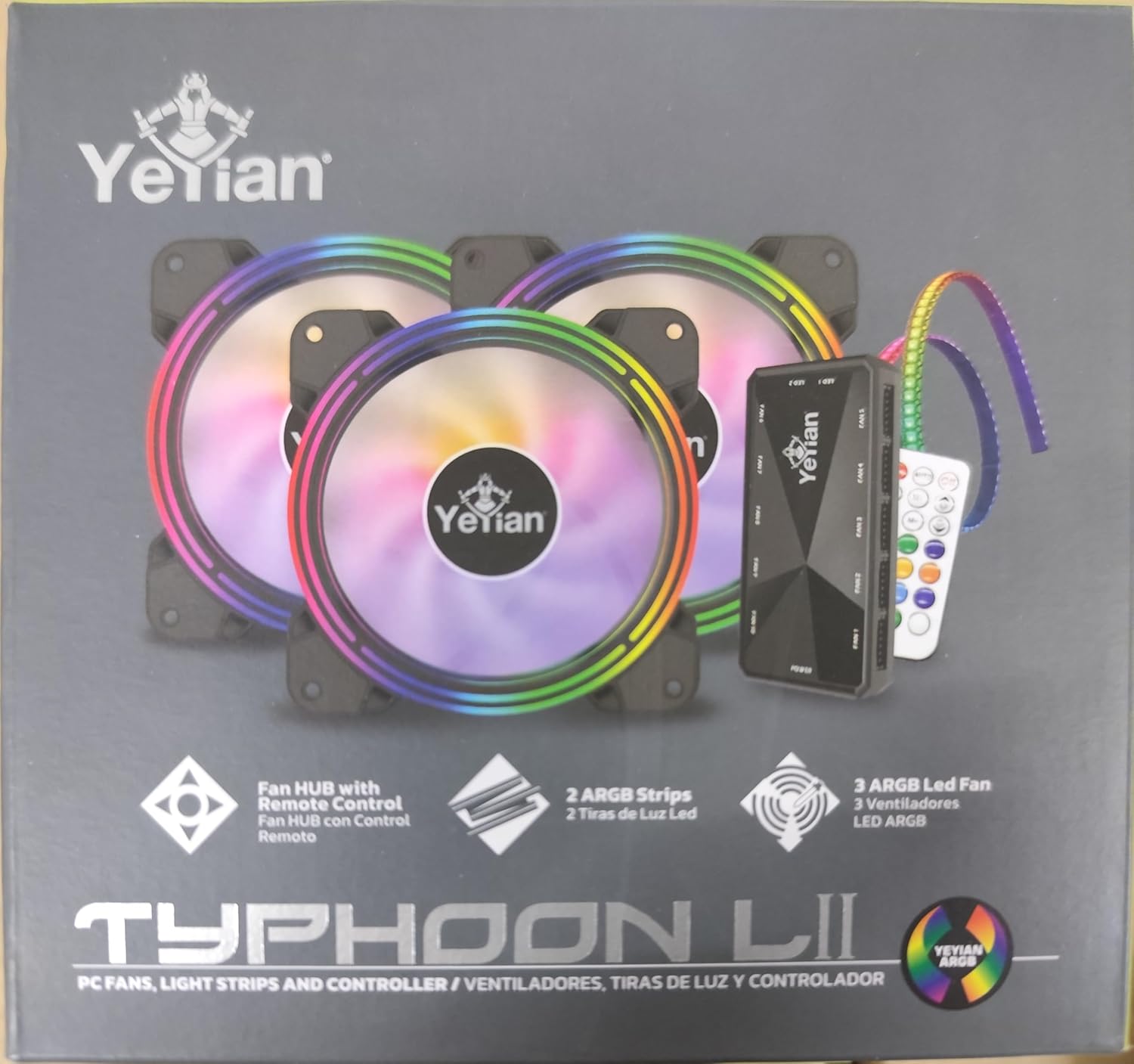 / KIT DE VENTILADORES ARGB YEYIAN TIRAS LED Y CONTROL TYPHOON YCF-3KFS-01