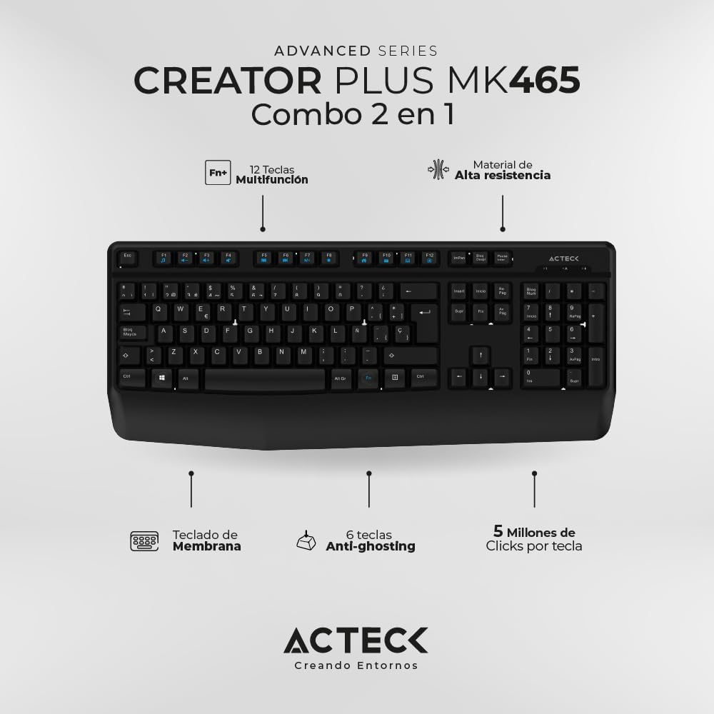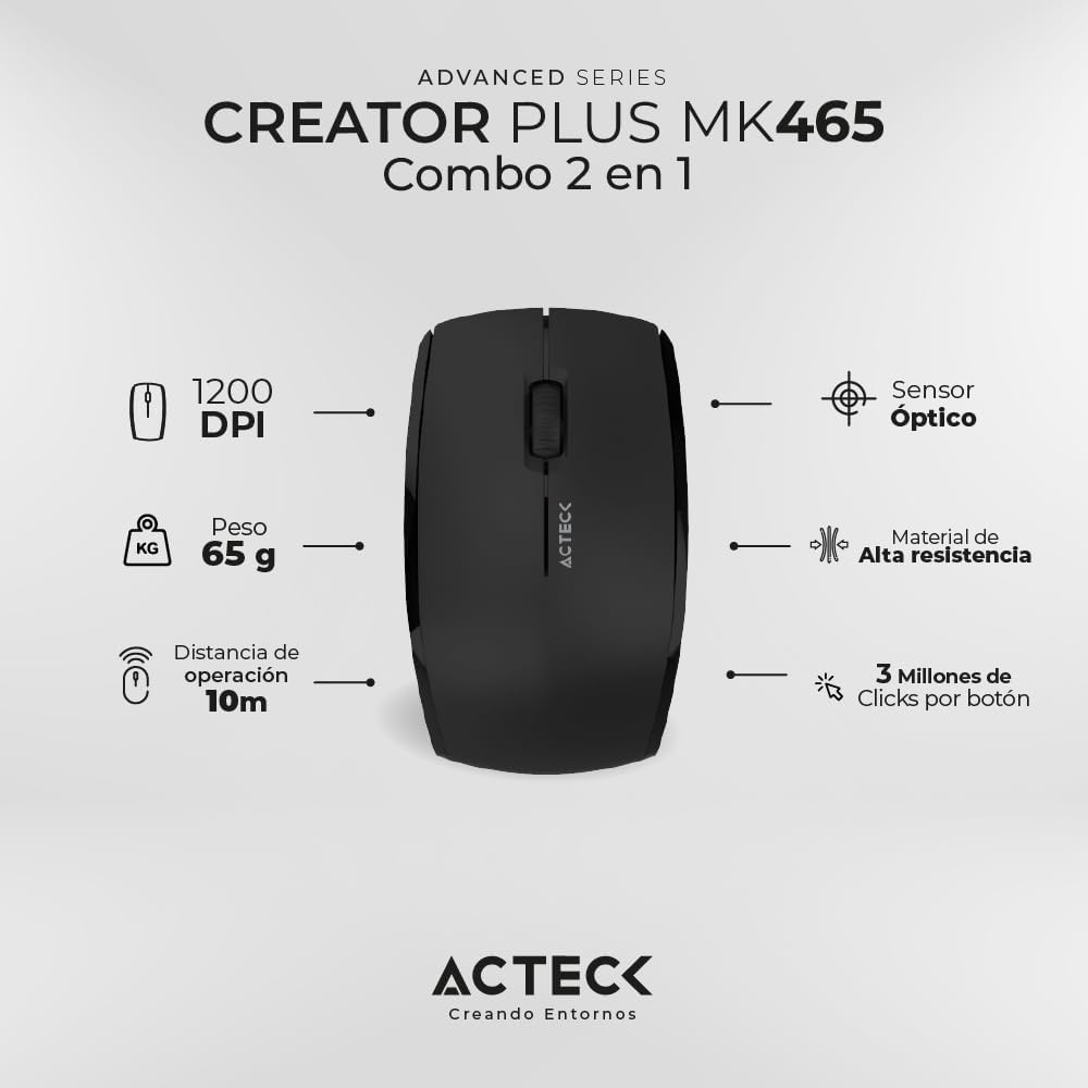 KIT TECLADO Y MOUSE INALAMBRICO ACTECK (AC-936354) MK465, MULTIMEDIA, USB, 1200DPI