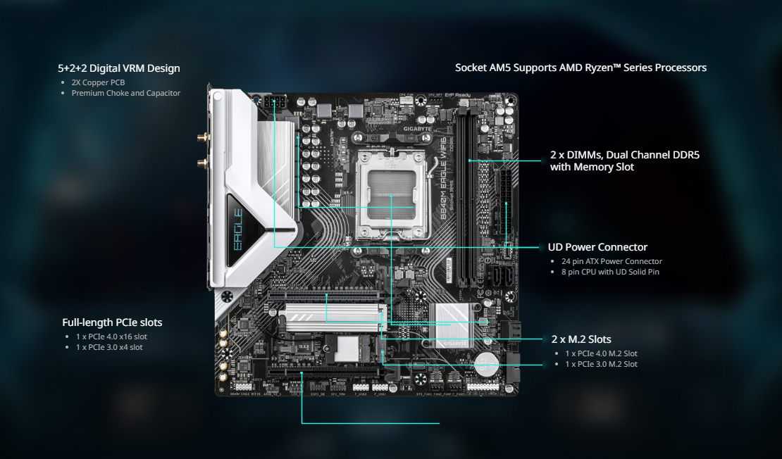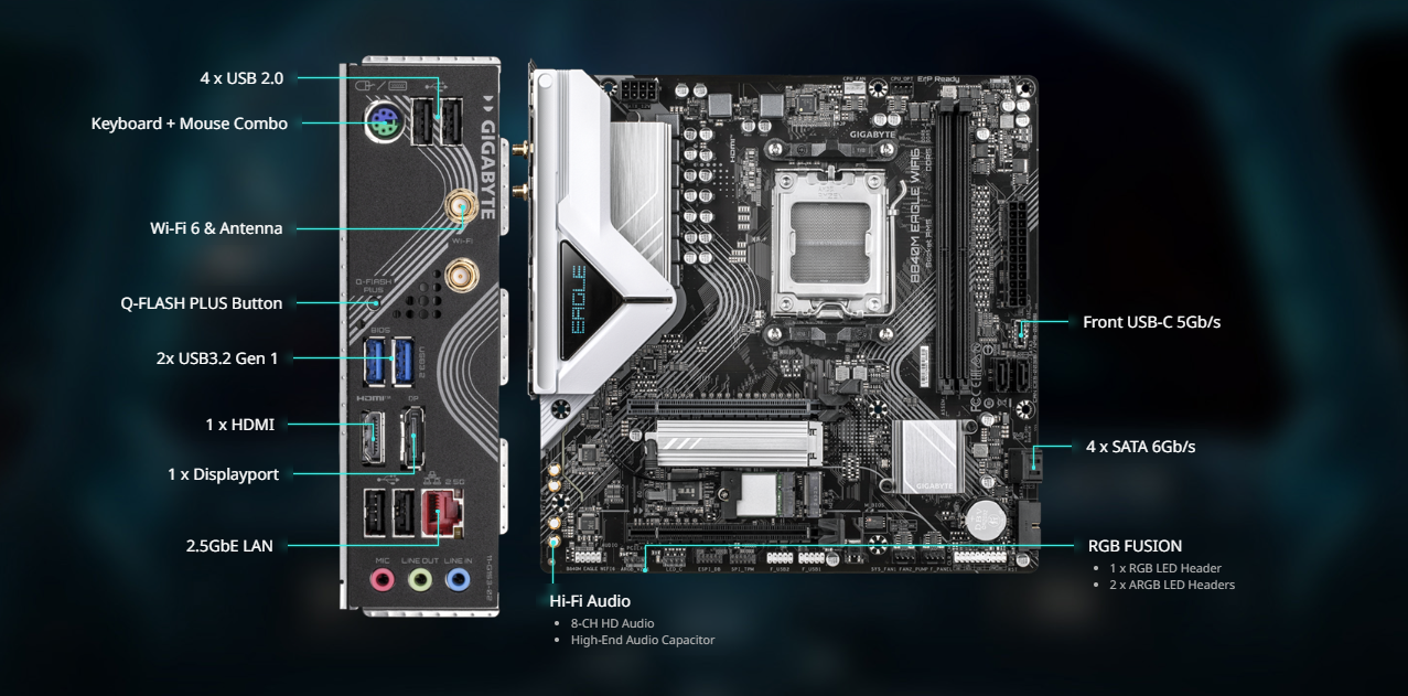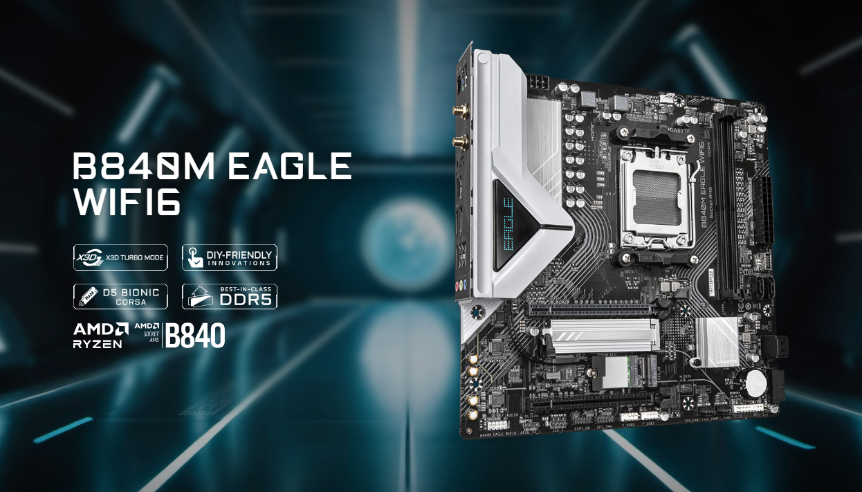 MOTHERBOARD GIGABYTE B840M EAGLE WIFI6 MICRO ATX AM5 2DDR5 1DP 1HDMI 2USB3.2 WIFI6 BT5.3 B840M EAGLE WIFI6