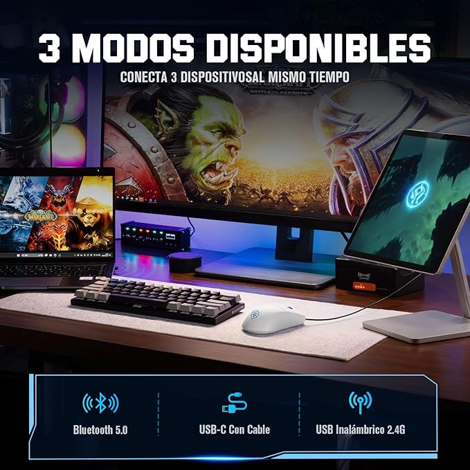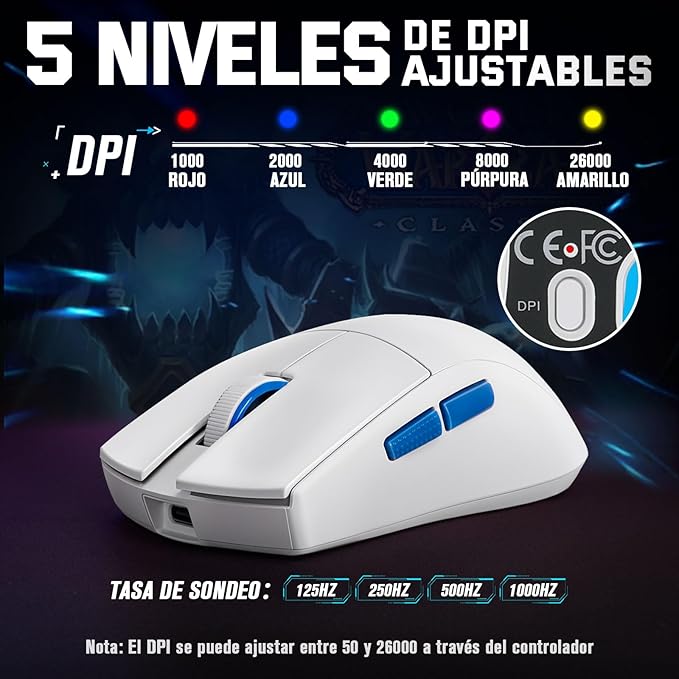 K1NG PRO 4K: WIRELESS BLUETOOTH/ 2.4 GHZ / ALAMBRICO + DPI 100-26000 + VELOCIDAD 4000HZ + PESO 49G