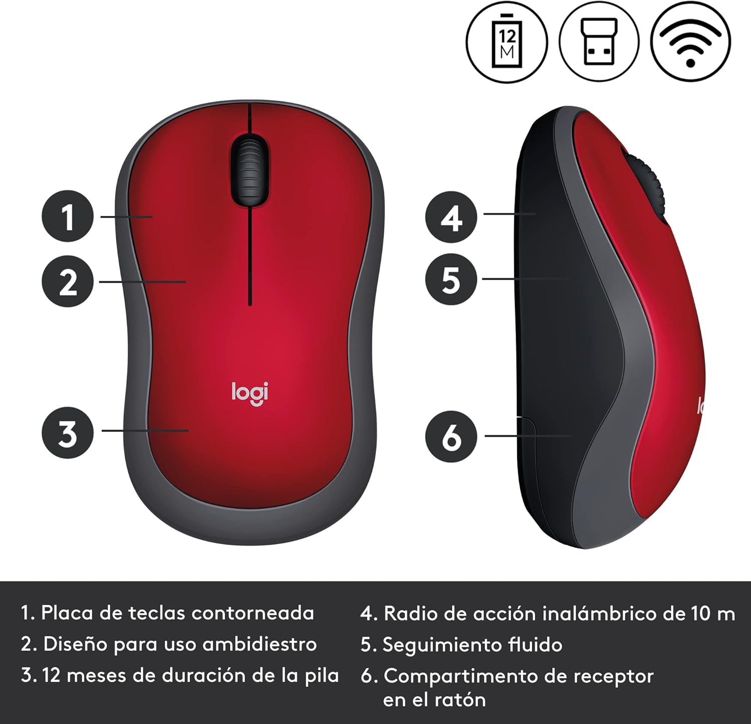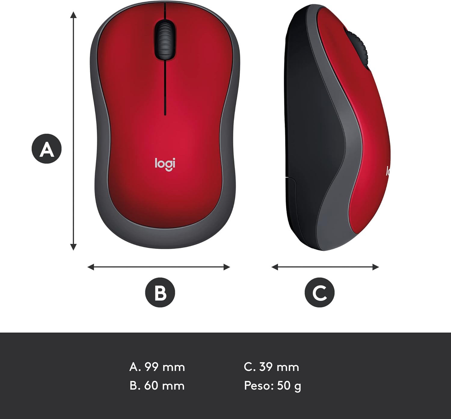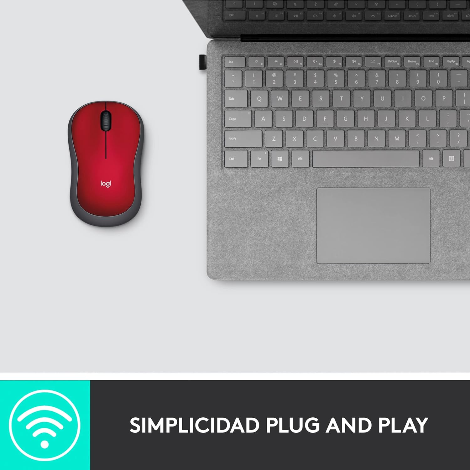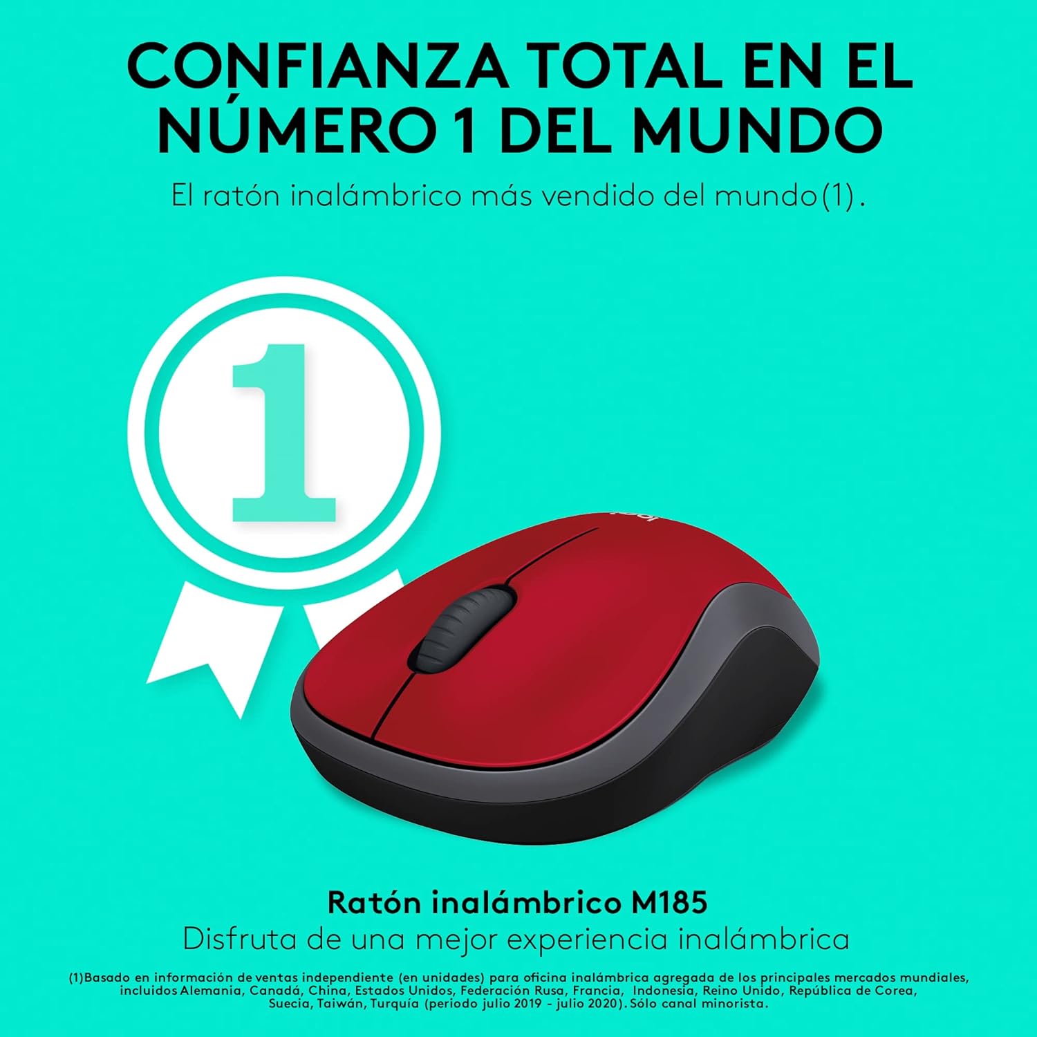 MOUSE LOGITECH M185 ROJO INALAMBRICO USB (910-003635)