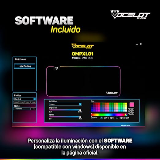 / MOUSE PAD OCELOT EXTENDIDO RGB CON SOFTWARE INTEGRADO