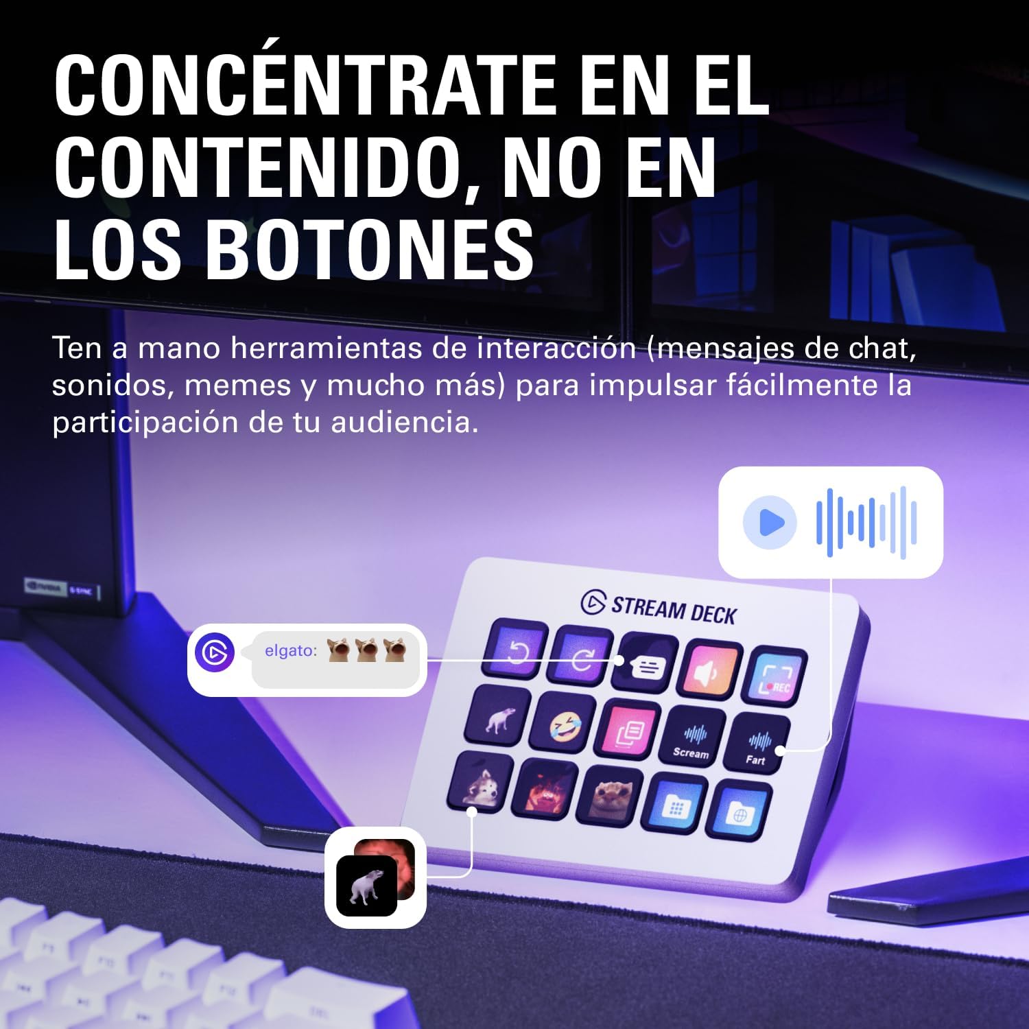 TECLADO P/STREAMING ELGATO (10GBD9911) STREAM DECK +, 8 TECLAS,AJUSTE DE NIVELES,PANTALLA TACTIL, BLANCO